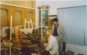 My ever dream has been to have a shear in taking a good care of his valuable art works. I loved to have a shear in serving the art of my territory in this way. Whenever I have a short trip to the artist’s place I took advantage of that occasion to visit him, on one hand because of spiritual environment and on the other hand, because of curiosity and tendency to see his new paintings. Each time I meet this valuable artist I am surprised because of his strong intention. I had the chance to take some films from his works or painting but that was never what really wanted till the Nowrooz (Iranian New Year) of 2005 that I had a trip to his place. Time was short and I had 2 days to take films and photos of all his painting for the website you are visiting now. He has about 1000 paintings but unfortunately I couldn’t take photo of all of them because of short time. I have been tried to do my best for taking photo and framing them (about 500 frames.) Due to my busy time for my studying and working, I need more time to finish and complete the website. I hope to finish as soon as possible.